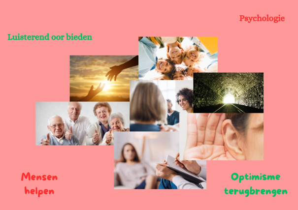 In de collage over mijn droombaan heb ik dezelfde kleuren en lettertypen gebruikt. Dit keer heb ik de kleur rood als achtergrond gebruikt, omdat je in dit werkveld erg sterk moet zijn. Zowel cliënt als medewerker. Daarnaast komt ook het groen weer terug, omdat het de bedoeling is dat uiteindelijk na behandelingen iedereen wat positiever verder door het leven kan.